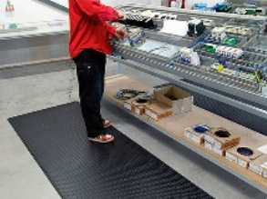 장시간 기립상태로 반복, 단순 작업을 하는 근로자의 피로 경감 및 근골격계 질환을 예방하며, 작업 능률 향상에 탁월한 효과를 제공하는 제품